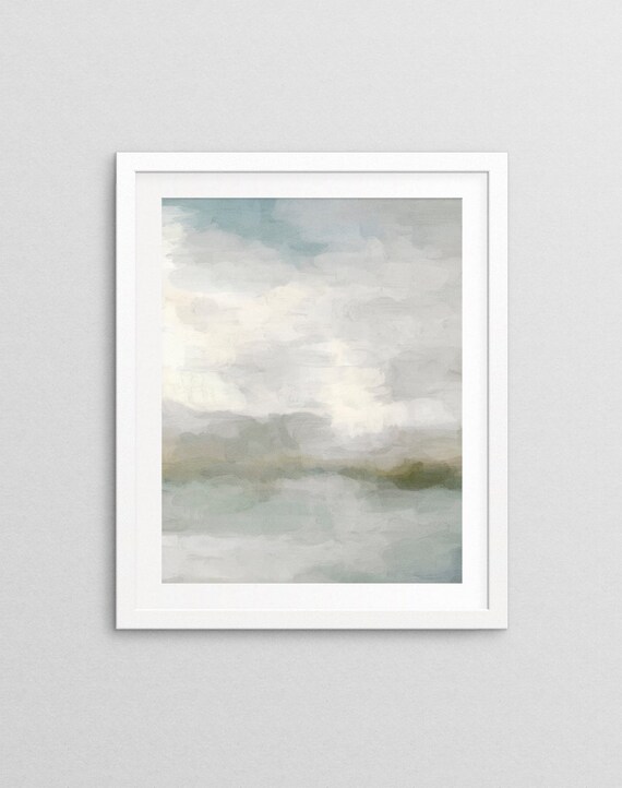 Modern Abstract Painting Light Teal Sage Green Gray Cloudy Weather Digital Prints Wall Art Ocean Nature Affordable Stylish Downloadable