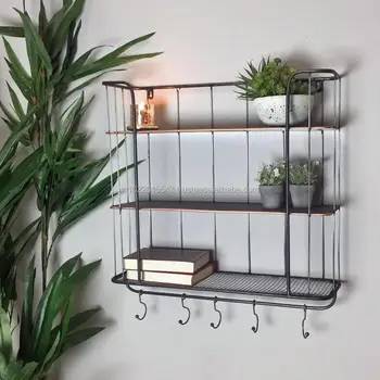 Industrial Wall Shelf With 3 Shelves Hanging Hooks Buy Antique Wall Shelf Modern Curved Wall Shelf 3 Story Wall Shelf With Product On Alibaba Com